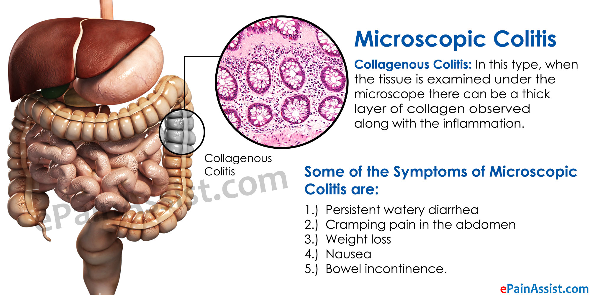 Microscopic Colitis is a pathological condition of the digestive system, specifically the large intestine, in which there is inflammation of large intestine causing persistent watery diarrhea. This condition gets its name due to the fact that it can be identified only when the affected tissues of the large intestine are examined under a microscope. Microscopic Colitis is hypothetically classified into two following types:
