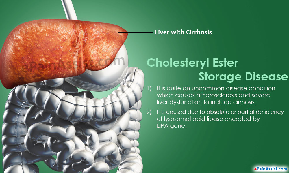 Cholesteryl Ester Storage Disease is quite an uncommon disease condition which causes atherosclerosis and severe liver dysfunction to include cirrhosis. Since Cholesteryl Ester Storage Disease is very rare hence it is often at times overlooked at the time of diagnosis. Previously, as there was no treatment for this condition there was little that could be done for this diagnosis; however, with continuous research and development in the field of medicine there is definite treatment available for Cholesteryl Ester Storage Disease and hence now it becomes important to diagnose this condition in its early phase so as to prevent treatable conditions from becoming complicated.