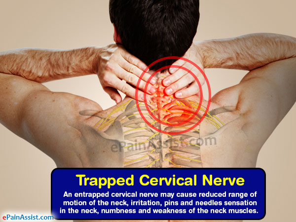 There may be various points in the body where a nerve may get entrapped throughout its course but usually the nerves get entrapped in the spine which is the cervical and lumbar spine. An entrapped cervical nerve may cause reduced range of motion of the neck, irritation, pins and needles sensation in the neck, numbness and weakness of the neck muscles.1 The nerves may get trapped due to becoming tethered as a result of scarring, due to disc bulging, or due to an overgrowth of the facet joint. If there is a disc bulge it may put pressure and trap the cervical nerve roots causing pain and numbness and tingling in the neck.