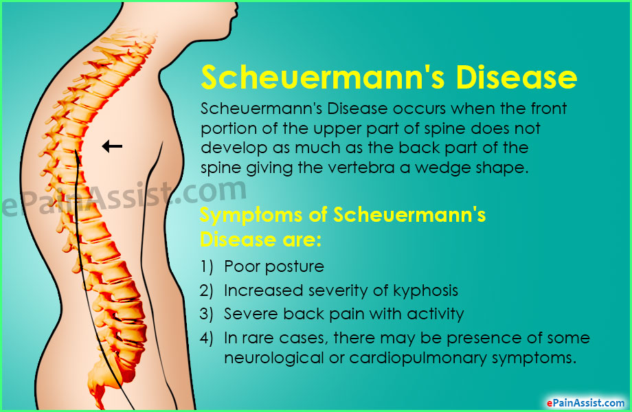 - In rare cases, there may be presence of some neurological or cardiopulmonary symptoms associated with Scheuermann’s Disease or Scheuermann’s Kyphosis.