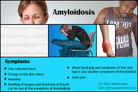- Weak hand grip and numbness of feet and legs is also another symptoms of Amyloidosis