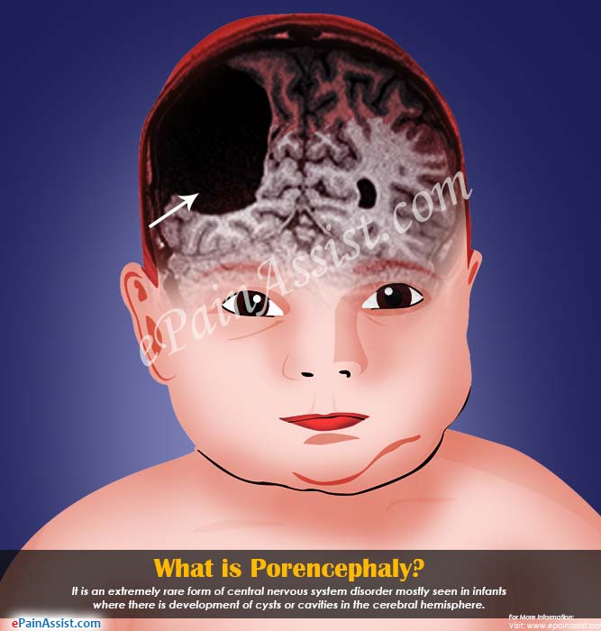 Porencephaly is an extremely rare form of central nervous system disorder mostly seen in infants where there is development of cysts or cavities in the cerebral hemisphere. These cysts or cavities are normally formed due to destructive cystic brain lesions. These cysts or cavities can also be formed due to abnormal fetal development, inflammation, or a direct damage to the brain. These cysts or cavities may result in numerous physical and neurological problems for the infant in majority of the cases, although there have been cases where Porencephaly has not caused much difference in the development of the child. Children with severe cases of Porencephaly are not able to survive more than two decades of their lives. Porencephaly can develop after and before birth.