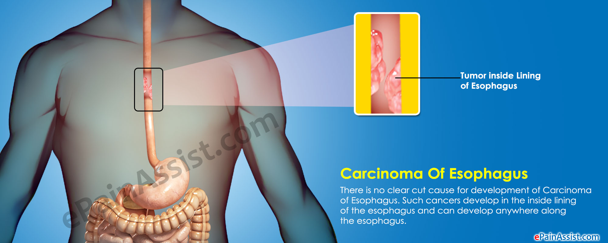 When there is a development of a tumor in the food pipe or the esophagus which is a long tube like structure running from the throat through the stomach through which the food passes before reaching the stomach, then it is called as Carcinoma of Esophagus or Esophageal Cancer. The tumors usually develops in the inside lining of the esophagus. Tumors can develop anywhere along the length of the esophagus but studies suggest that in United States it occurs in the last half of the esophagus and it is found to occur more in males than females.