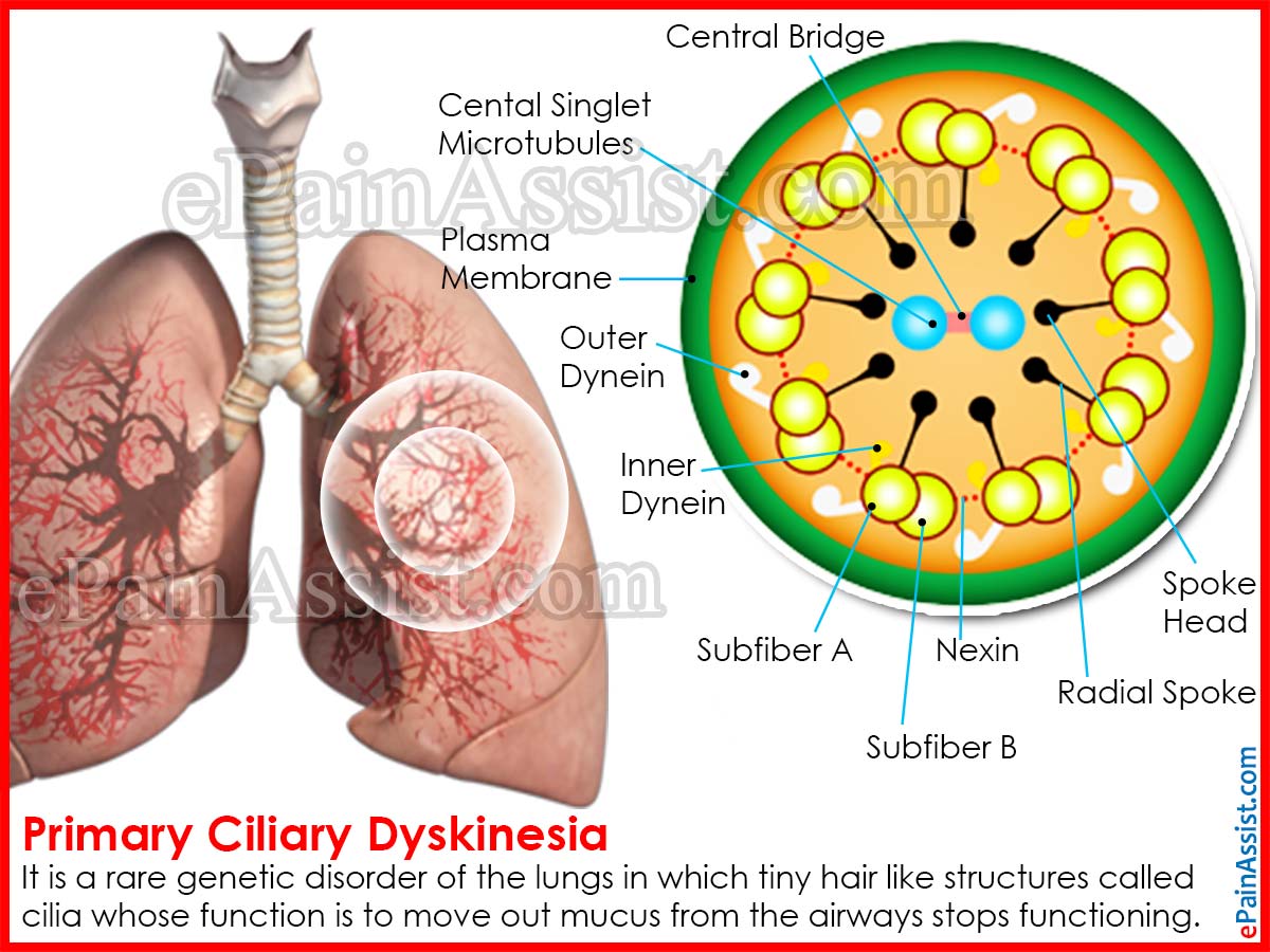 Primary Ciliary Dyskinesia also known as Immotile Cilia Syndrome is a rare genetic disorder of the lungs in which tiny hair like structures called cilia whose function is to move out mucus from the airways stops functioning resulting in accumulation of mucous leading to blockage and variety of infections. At present, there is no clear cut cure for Primary Ciliary Dyskinesia but with regular treatment affected people lead normal lives.