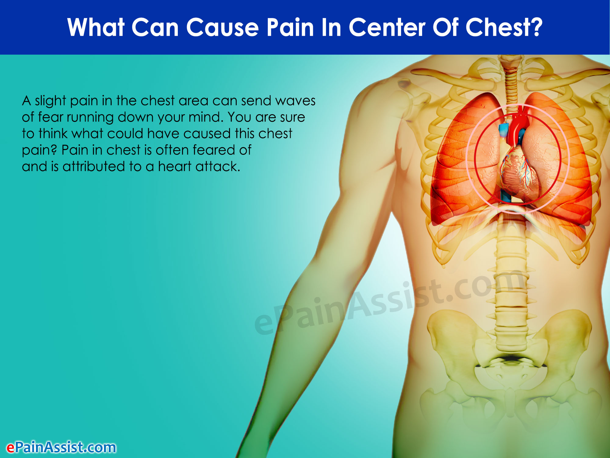 When you experience pain in the center of chest, you would like to consider various other reasons that could be bothering you in the form of chest pain. The pain in center of chest can be of dull and constant type or chest pain that may come and go. Sometimes pain in center of chest may occur on stretching, exercising, breathing deeply or lying down.