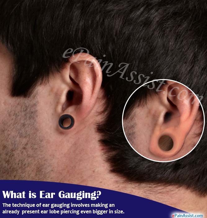 The technique of ear gauging involves making an already present ear lobe piercing even bigger in size. The benefit of having gauged ears is that the person can wear ear jewelry of different sizes, which may not fit into small sized piercing otherwise.