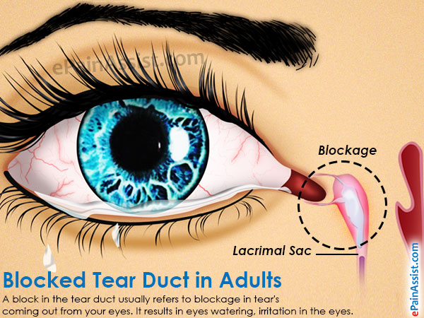 Continuous watering of eyes or persisting irritability, causing infections are some out the symptoms of a tear duct blockage in the eye. It is recommended to consult a doctor if this does not subside by itself as tumors can cause blocked tear duct in adults.
