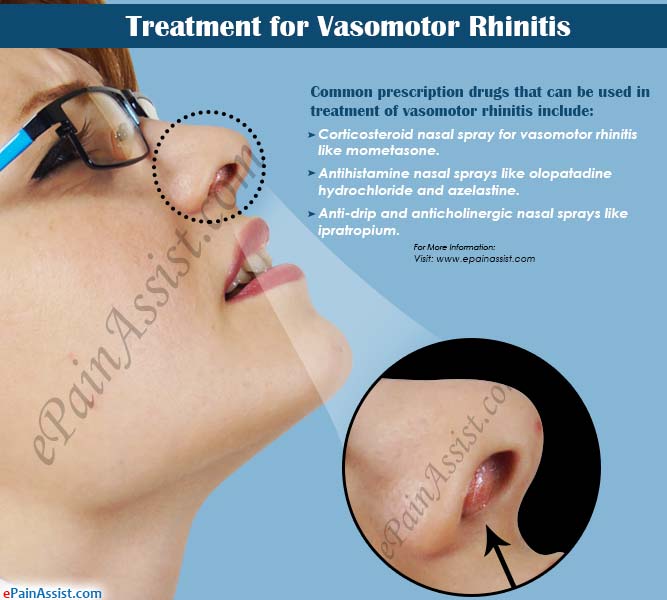 - Use of OTC corticosteroid nasal sprays for example fluticasone can help in the treatment of vasomotor rhinitis.