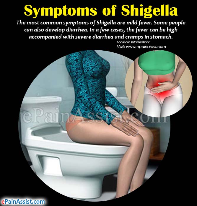 Some other symptoms of shigella include loss of appetite, cramps in stomach, pain during bowel movement, vomiting, nausea and high fever. Excessive loss of fluids from the body can cause severe complications including kidney failure.