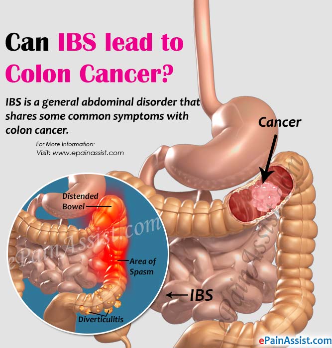 IBS does not lead to colon cancer but if you are an older adult then there is a chance that you may be suffering from both IBS and colon cancer. IBS and Colon Cancer are two completely different conditions. They may have some common symptoms but IBS does not lead to colon cancer or increases the risk of colon cancer. IBS and colon cancer are two independent conditions and neither of them triggers the other. Each one of them has different causes, diagnoses, treatment options and outcomes.