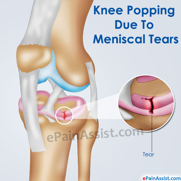 Knee Popping Due To Meniscal Tears: There are times when the ligaments and the meniscus in the knee tend to get stretched beyond their limits either due to sporting activity or due to an injury like a slip and fall which results in tearing of the ligament or meniscus. This condition causes Knee Popping and severe pain in the knee.