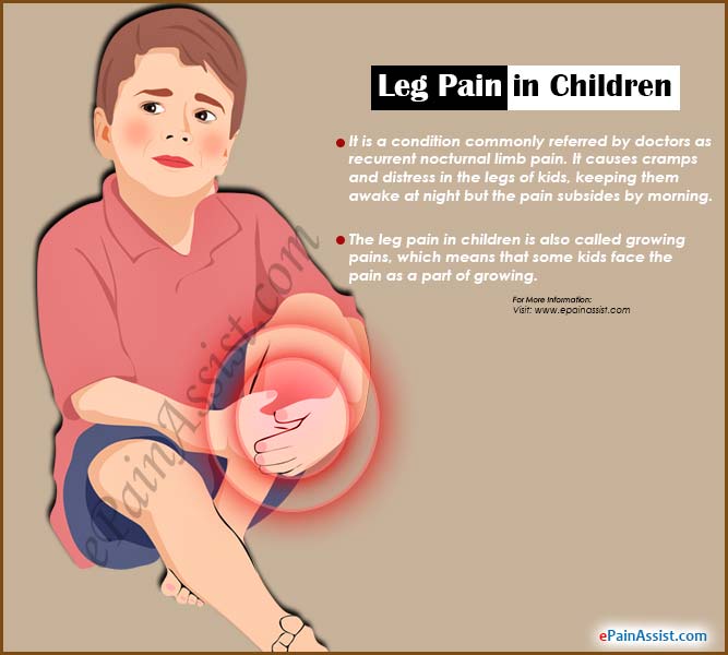 The leg pain in children is also called growing pains, which means that some kids face the pain as a part of growing. Although, there is no proven research to support this belief but these pains usually stop as the kids grow.