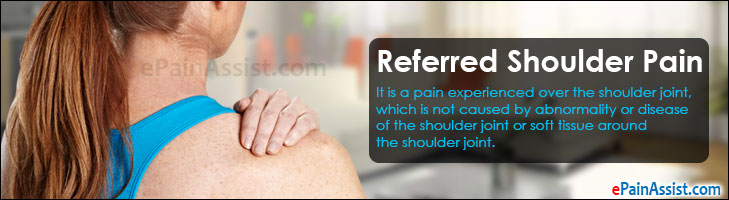 • Referred Shoulder Pain is a pain experienced over the shoulder joint, which is not caused by abnormality or disease of the shoulder joint or soft tissue around the shoulder joint.