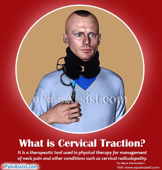Cervical traction is a therapeutic tool used in physical therapy for management of neck pain and other conditions such as cervical radiculopathy. The human spine is made up of spinal bones called as vertebrae, which are stacked upon each other. In the neck region, there is a disc present between each of these vertebrae and they are known as cervical discs. Cervical traction works on the principle of releasing abnormal pressure build up over these cervical discs by separating the vertebrae in the neck. Cervical traction helps in reducing the compressive forces over the affected portion on the neck. It also helps in widening the spaces between the cervical bones, through which nerves exit the spinal canal. This in turn provides relief to the compressed nerves. Cervical traction also helps in pain management by stretching the muscles and joints around the cervical area.