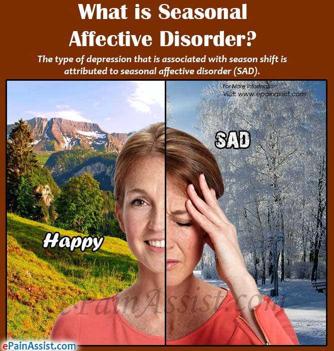 The type of depression that is associated with season shift is attributed to seasonal affective disorder (SAD). This disorder starts and ends, approximately at the same time every year. The symptoms of seasonal affective disorder usually start in the fall and continue through the winter. Usual symptoms of seasonal affective disorder are loss of energy and drastic mood changes. However, some people experience these symptoms in spring and early summer months.