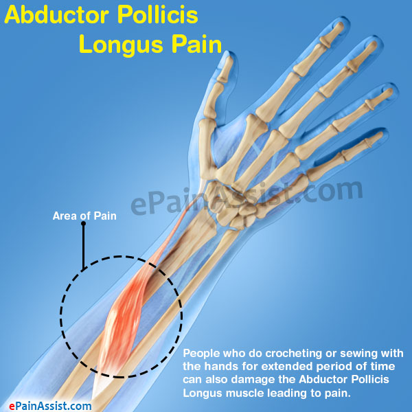 - People who do crocheting or sewing with the hands for extended period of time can also damage the Abductor Pollicis Longus muscle leading to pain.