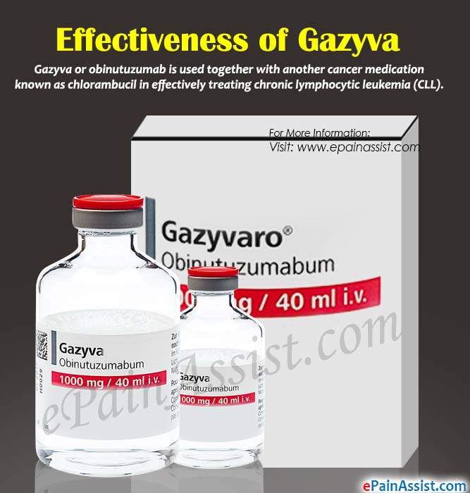 Gazyva or obinutuzumab is used together with another cancer medication known as chlorambucil in effectively treating chronic lymphocytic leukemia (CLL).