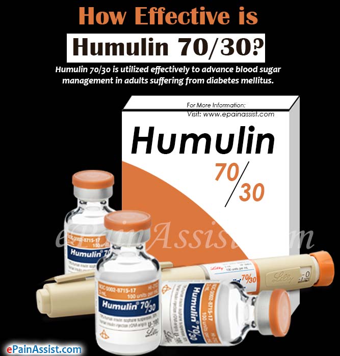 Humulin 70/30 is made up of insulin regular and insulin isophane. Insulin hormone reduces the levels of blood sugars. Insulin regular is short acting insulin while insulin isophane is an intermediate acting form of insulin. Effects of this mixture are evident between 10 to 20 min after injection. The climax is in 2 hours and it will last for 24 hour.