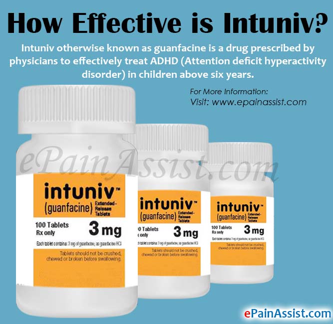 Intuniv otherwise known as guanfacine is a drug prescribed by physicians to effectively treat ADHD (Attention deficit hyperactivity disorder) in children above six years. Although intuniv or guanfacine does not stimulate central nervous system, it is given with a combination of ADHD medication.
