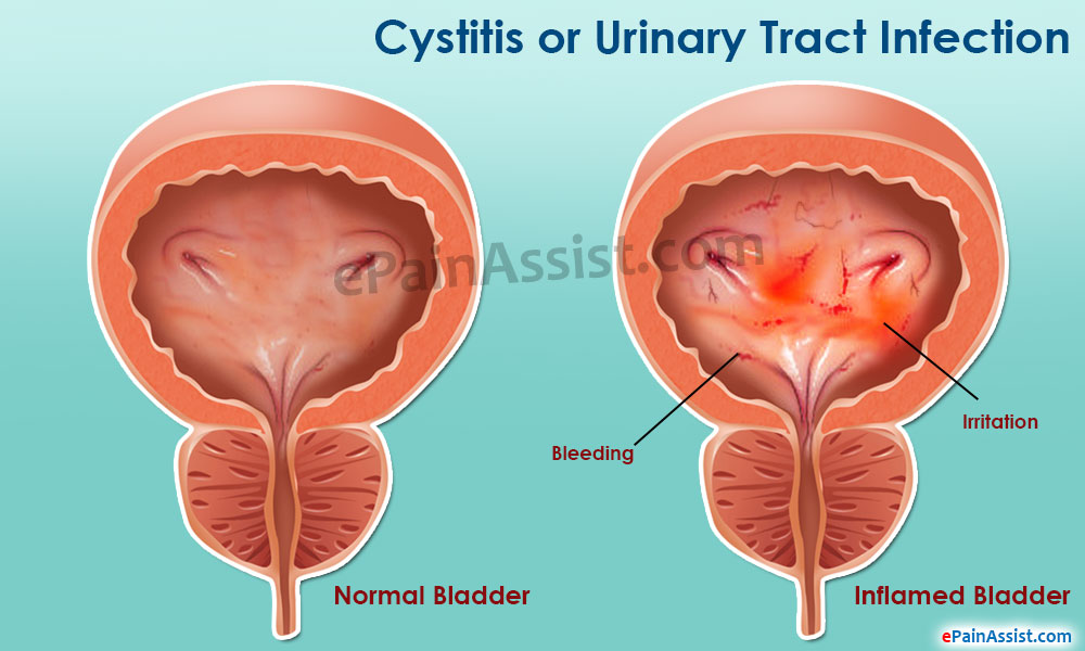 • Cystitis Associated with other Conditions: Cystitis can also occur as a complication of other disorders, such as pelvic inflammatory disorders, gynecologic cancers, endometriosis, diverticulitis, Crohn’s disease, tuberculosis or lupus.
