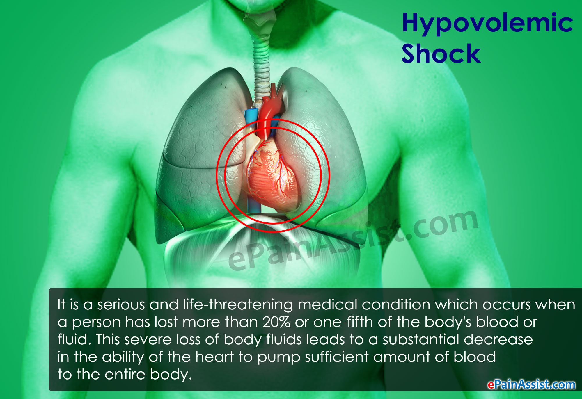 Hypovolemic shock, also known as hemorrhagic shock, is a serious and life-threatening medical condition which occurs when a person has lost more than 20% or one-fifth of the body’s blood or fluid. This severe loss of body fluids leads to a substantial decrease in the ability of the heart to pump sufficient amount of blood to the entire body. Hypovolemic shock also causes multiple organ failure and this condition requires prompt medical attention for the survival of the patient. Hypovolemic shock is thought to be the leading cause of death in individuals who have sustained traumatic injuries; injuries which will cause profuse loss of blood.