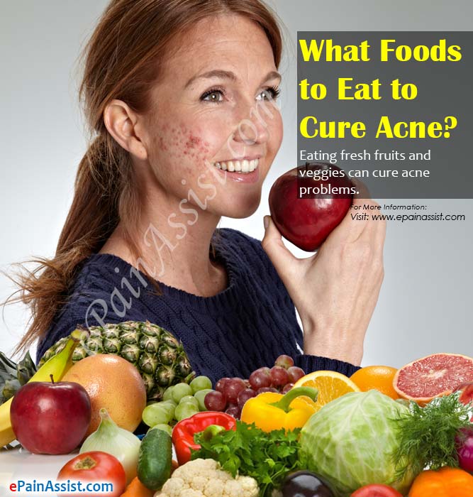 Eat omega-3 fatty acid rich food to cure acne. A few dermatologists surmise that omega-3 unsaturated fats, which help keep inflammation under control, may help monitor acne problem. Fish like salmon, mackerel, and sardines all consist of omega-3 fatty acids. Additionally, you can also consume flaxseed and walnuts for their same traits.