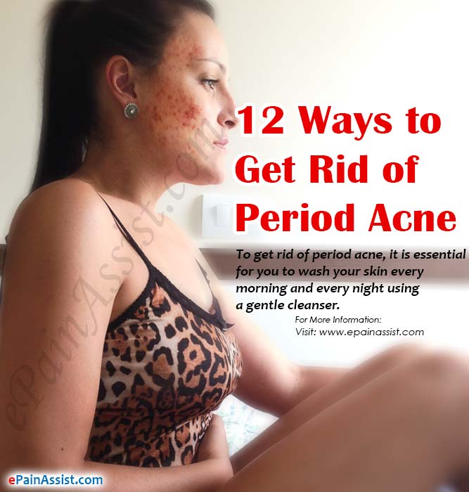 To get rid of period acne, it is essential for you to wash your skin every morning and every night using a gentle cleanser. Make sure you are not using a rough scrubbing product to wash your face or washing more than 2 times in a day; else it could make your period acne worse. The University of Maryland Medical Center also recommends using only facial products and makeup that are non-comedogenic ( They will not clog pores) and are oil-free.