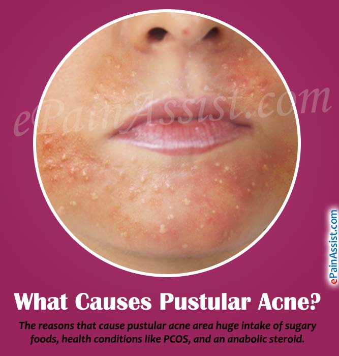There is no different causative cause for the development of pustular acne. It takes place as some other type of skin breakout. The reasons that cause pustular acne area huge intake of sugary foods, health conditions like PCOS, and an anabolic steroid. Also, the growth hormones such as androgen can be brought into the body from milk and items. It mostly happens to teenagers and especially girls. However, it may grow among people in their twenties too.