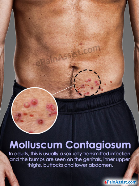 Molluscum Contagiosum (MC) is a viral skin infection, which is characterized by firm, round, painless bumps, which can be as small as a pinhead, to as big as a pencil eraser. If the bumps get injured or scratched, then the infection spreads to the adjacent skin. Molluscum contagiosum can affect anyone; however, it is more common in children. Adults with weak immune systems are more prone to have this infection. If the molluscum contagiosum affects the genitals in adults, then it is considered a STI or sexually transmitted infection. Molluscum contagiosum is contagious and spreads via direct skin to skin contact and through touching contaminated objects. The bumps of molluscum contagiosum commonly resolve in a year without treatment; however, it is recommended to get them removed by a doctor or surgeon.