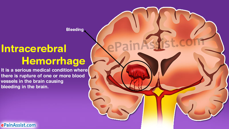 An intracerebral hemorrhage is a serious medical condition where there is rupture of one or more blood vessels in the brain causing bleeding in the brain. Immediate medical attention should be sought in this condition. The most common cause of this condition is traumatic brain injury.