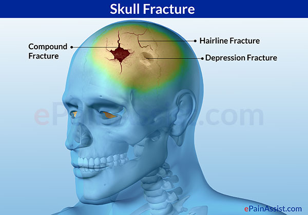 A skull is constituted of the following bones: Parietal bone which form the sides of the skull, cranium which form the posterior side of the head, and frontal bone which is the forehead. Any sort of break or fracture to any one or all of the bones forming the skull is termed as skull fracture. The most common cause of a skull fracture is a trauma impacting the head from some sort of an object or during sporting activities. This most commonly occurs in contact sports where they can be collisions between players such as soccer, rugby etc. or being hit by a ball such as while playing cricket. A fall from a decent height on the head can also result in a skull fracture.