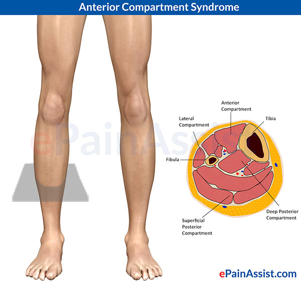 Anterior compartment syndrome is a condition, which occurs when the muscle increases in its size and becomes too big for the sheath that surrounds resulting in pain. The compartment syndrome can be acute or chronic. The anterior compartment is surrounded by a sheath. This sheath encloses the muscles. If a muscle increases in size than the surrounding sheath, it results in a compartment syndrome. There are four muscles present in the compartment: Tibialis anterior, extensor hallucis longus, extensor digitorum longus, and peroneus tertius. This syndrome can affect any or all four muscles which are present in the compartment. The function of the muscles[¹] is dorsiflexion and eversion of the foot. High impact activities, such as running, put a lot of stress on these muscles.