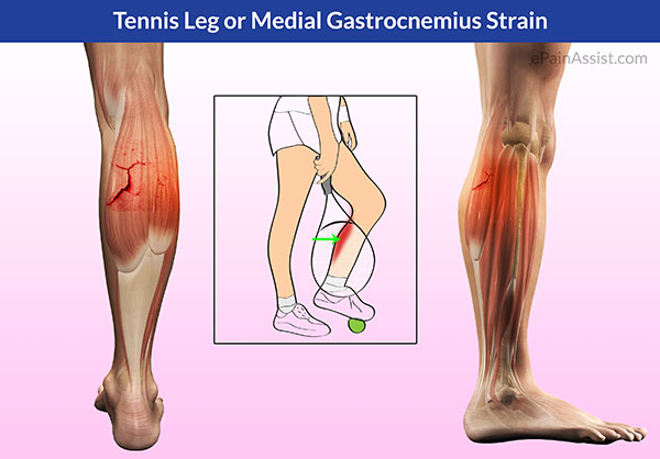 Tennis leg, also known as medial gastrocnemius strain, is a condition where the medial head of the gastrocnemius muscle gets torn causing lot of pain. There may be a tear of plantaris muscle or sometimes both the muscles may be torn. Generally, surgery is not required for this injury.