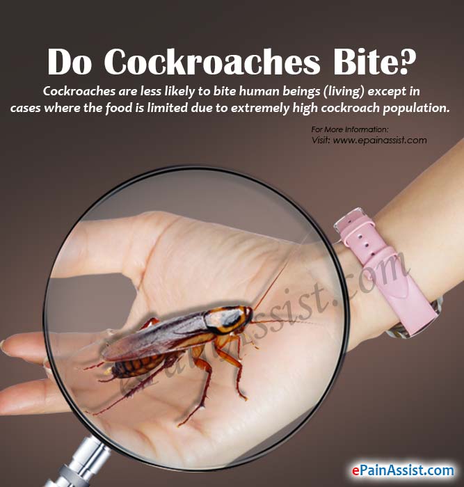 Cockroach bite causes swelling and itching and infected too. Keep the house clean and tidy to prevent their bites and also their infestation and make sure everyone in your home especially children go to bed clean. Since cockroach bites are typically not intentional, it is usually the children who do not clear up after food that are bitten by cockroaches. Brushing teeth and washing are essential ways of preventing the cockroach bites. The bite of a cockroach can last for a week.